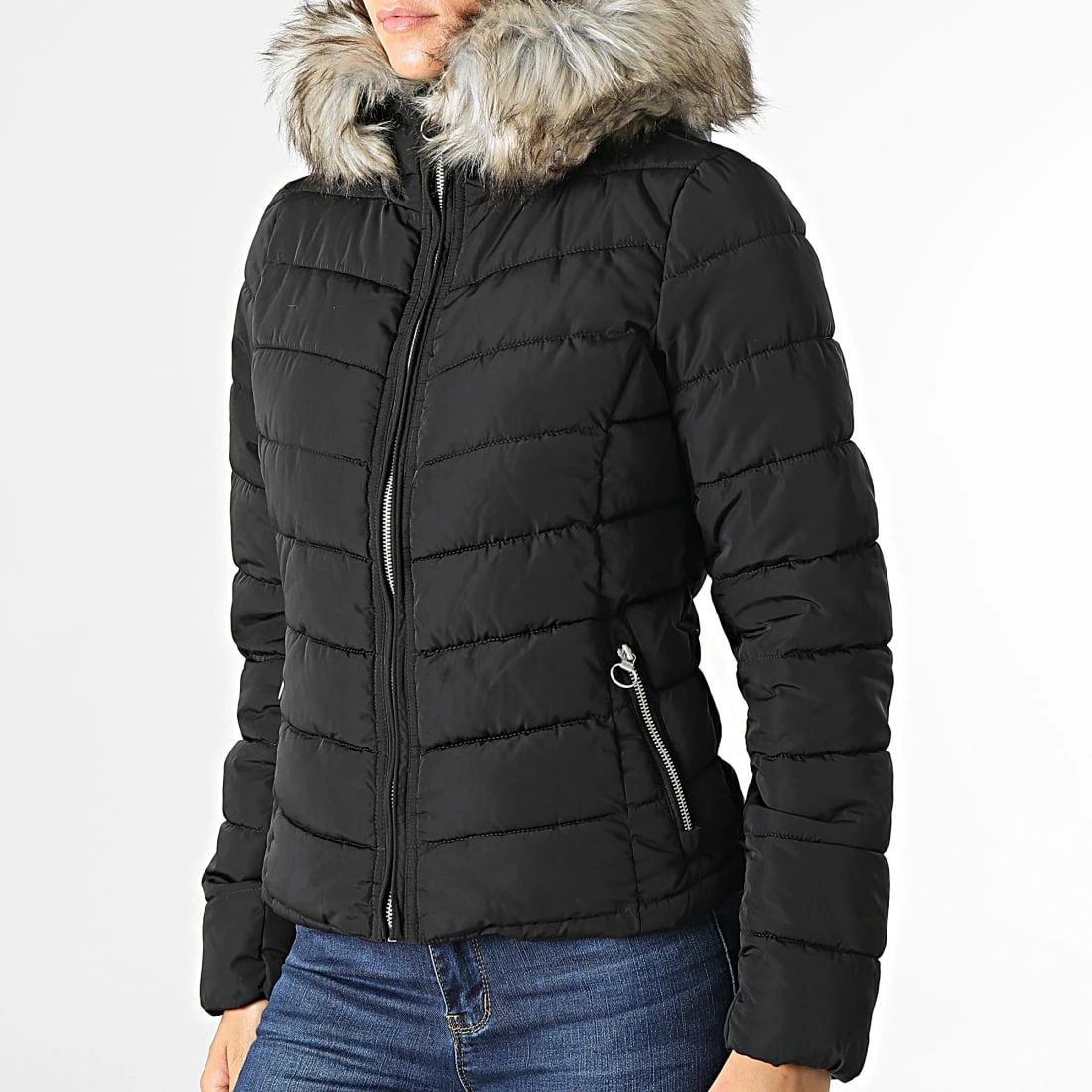 • Doudoune avec capuche à fourrure synthétique amovible