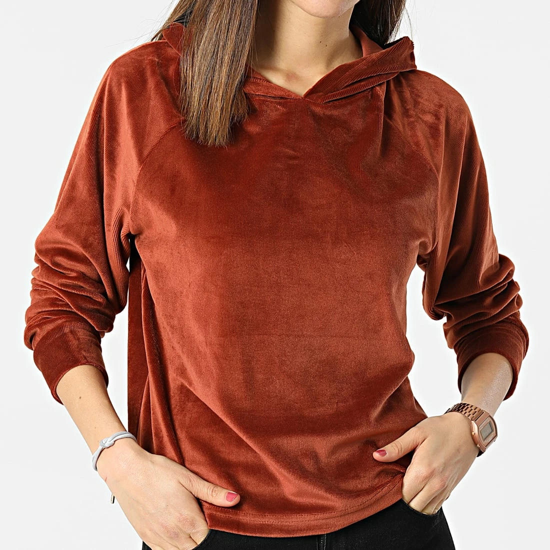 • Pull en maille capuche confortable aspect velours